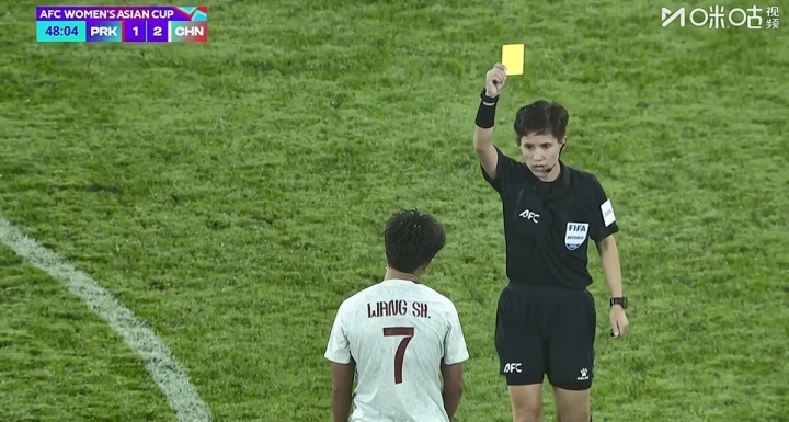 比赛第48分钟,王霜带球被断随后犯规拉住对手,吃到黄牌。