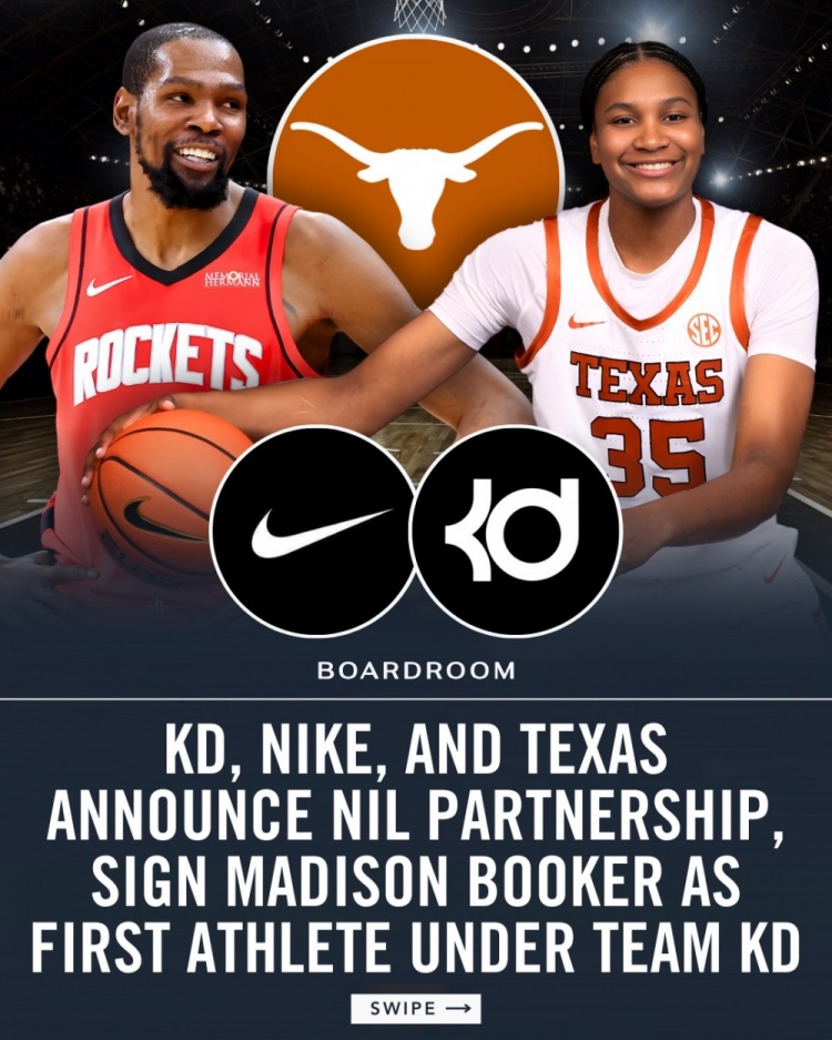 在与耐克的合作下,德克萨斯大学女篮前锋麦迪逊·布克将成为首位Team KD成员,她将获得个人专属的KD PE球鞋、服装等资源支持的运动员。